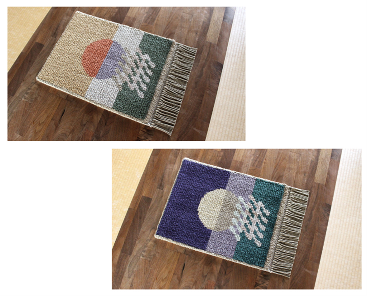株式会社織ものがたりとデザイナーのMasahiko Kajima氏が共創。絨毯は小さい頃に触れた暖かさや、家のどこかにあった記憶など懐かしさを感じさせます。今回「ねむる」というネームで、過去の優しい記憶に包まれながら眠りにつけるよう「テーブルに置ける小さな絨毯」として、鍋島緞通との新しい暮らし方をご提案します。デザインは鍋島緞通の地域性を考え、佐賀県の浜野浦の夕方と夜の景色をモチーフとしています。